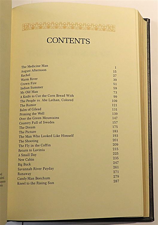 Hardback. A beautifully bound book offering a collection of short stories from the American writer Erskine Caldwell. Handsomely bound in deep brown leather with beautifully detailed gilt borders to the sides. Gilt detail and titles lie between three raised bands to the spine. All edges are gilt. The pages are beautifully clean and the text enhanced by the illustrations of Dennis Lyall. Rich brown silk endpaper and ribbon bookmark complete the sumptuous feel of the book. pp. 313. Overall a very good copy.